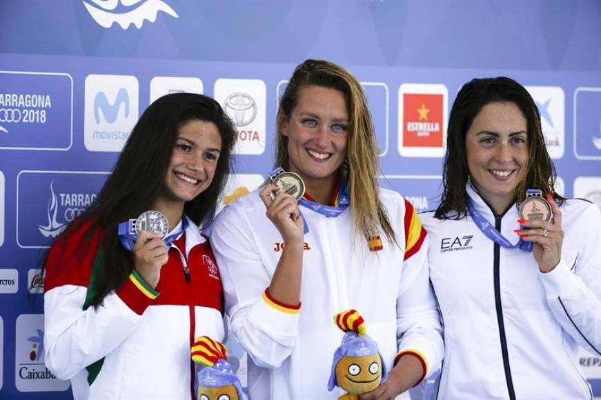 Efe – Si Mireia Belmonte se marcha de Tarragona con malas sensaciones, Jessica Vall lo hace con las mejores. La barcelonesa defendía el título de 200 braza de los Juegos Mediterráneos, pues ya ganó en Mersín 2013. Y volvió a repetir el oro batiendo el récord de los campeonatos. También fue primera ayer, en los 100 braza, con nuevo récord de los Juegos, y hoy se colgó su tercera medalla, esta vez un bronce, en los 50 metros braza. La otra gran estrella de la natación de Tarragona 2018, el italiano Gregorio Paltrinieri, cumplió sin problemas con las expectativas. Tarragona (España), lunes 25 de junio de 2018. fotografía: TARRAGONA (ESPAÑA), 25.06.2018. (De i-d) la portuguesa Ana Catarina Belmonte, plata, Mireia Belmonte, oro, y al italiana Alessia Polieri, bronce, en el podio de 200 metros mariposa de la XVIII edición de los Juegos Mediterráneos. Efe.