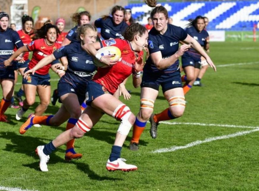 El duelo estaba decidido, pero España no cesaba en su empuje. Cumplida media hora de juego Alba Vinuesa ensayaba por banda derecha, y Laura Delgado por el centro.