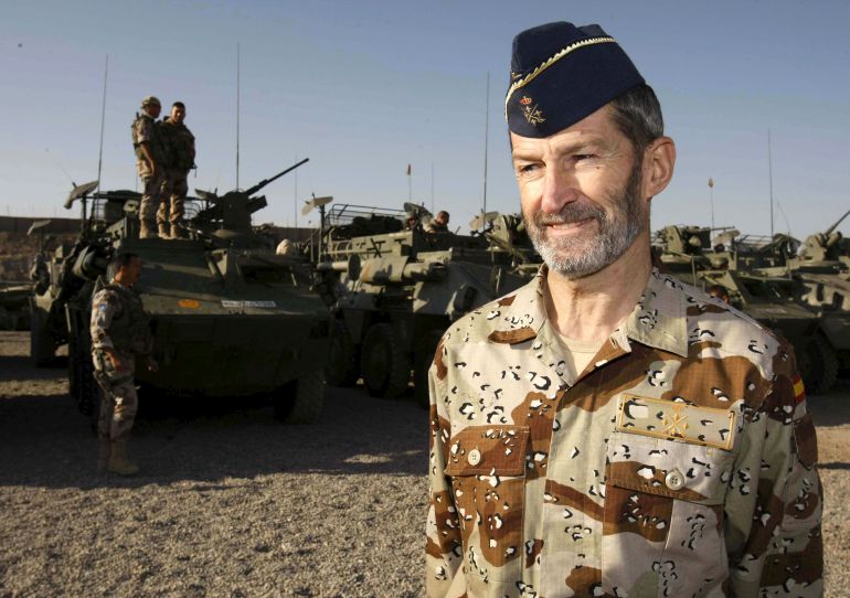 Redacción – Julio Rodríguez, el soldado del Ejército de la patria y actual militante y cabeza de lista de la coalición Unidos Podemos de Pablo Iglesias y Alberto Garzón por Almeria (Andalucía) nunca cumplirá su sueño de Diputado de la formación extremista podemita, ya claramente separatista antiespañola en Cataluña cuya militante ex okupa Ada Colau se burla del Ejército en público; Podemos. La franquicia de Podemos en Almeria (Podemos-Izquierda Unida-Equo) solo se quedó con un total de 39.995 votos o sea el 13,12 % del escrutinio. Cataluña (España), lunes 27 de junio de 2016. Fotografía: El ex jefe del Estado Mayor de la Defensa (JEMAD), José Julio Rodríguez, a su llegada a la localidad afgana de Herat (25.10.08), donde visitó a las tropas españolas desplazadas en la zona. Archivo Efe.