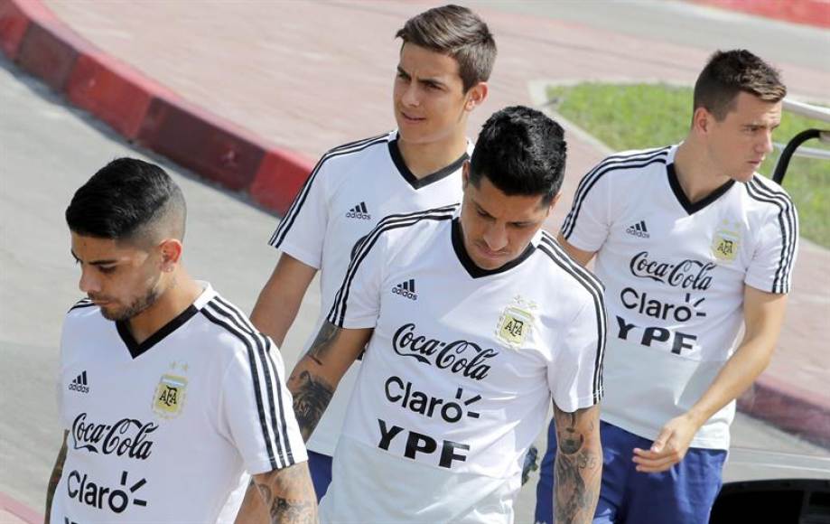 Efe – Croacia, el día que el planeta buscaba a Lionel Messi, se exhibió de la mano de Luka Modric, espléndido liberado en la mediapunta, e Ivan Rakitic, dueño del mediocentro. Cortó Nigeria (2-0 a Islandia) la hemorragia de una Argentina poco fiable y sin atisbos de ser capaz de reaccionar. Moscú (Rusia), lunes 25 de junio de 2018. Fotografía: PRIMERA SEMANA DEL MUNDIAL RUSIA 2018. 24.06.2018. Argentina’s Ever Banega, Enzo Pérez, Paulo Dybala, y Giovani Lo Celso, attend a team’s training session in Bronnitsy, Russia, 24 June 2018. Efe.
