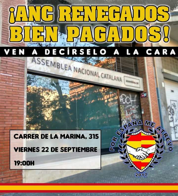 «Ven a decírselo a la cara (a ANC): ¡renegados bien pagos!» separatistas en Cataluña el próximo viernes 22-S a las 19:00 horas