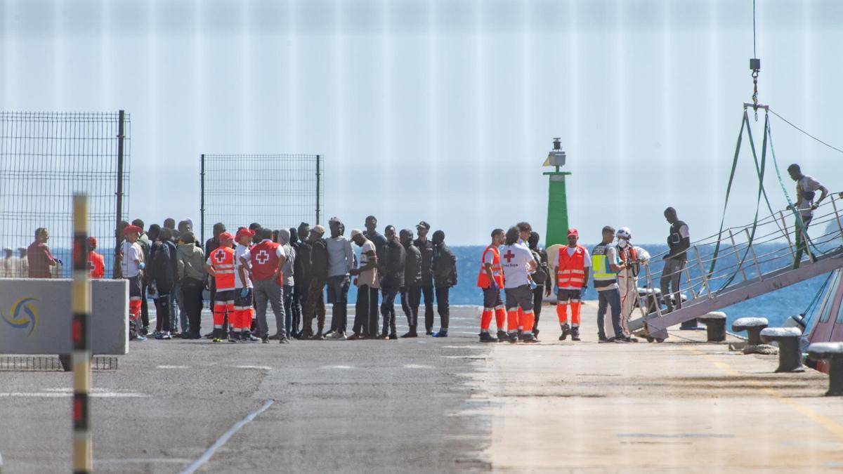Los 82 fueron trasladados al muelle de Puerto del Rosario, en Fuerteventura, dada la alta ocupación de los recursos de acogida de Lanzarote por las continuas llegadas de la última semana.