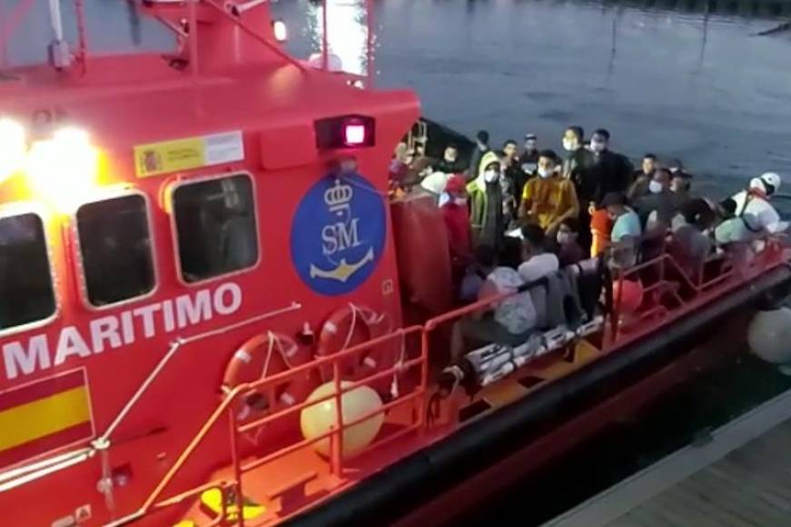 Efe.- Fuerteventura (España), jueves 2 de septiembre de 2021. La Salvamar Mizar ha trasladado hasta el puerto de Gran Tarajal a los 59 inmigrantes de origen subsahariano localizados en una neumática al sur de Fuerteventura.