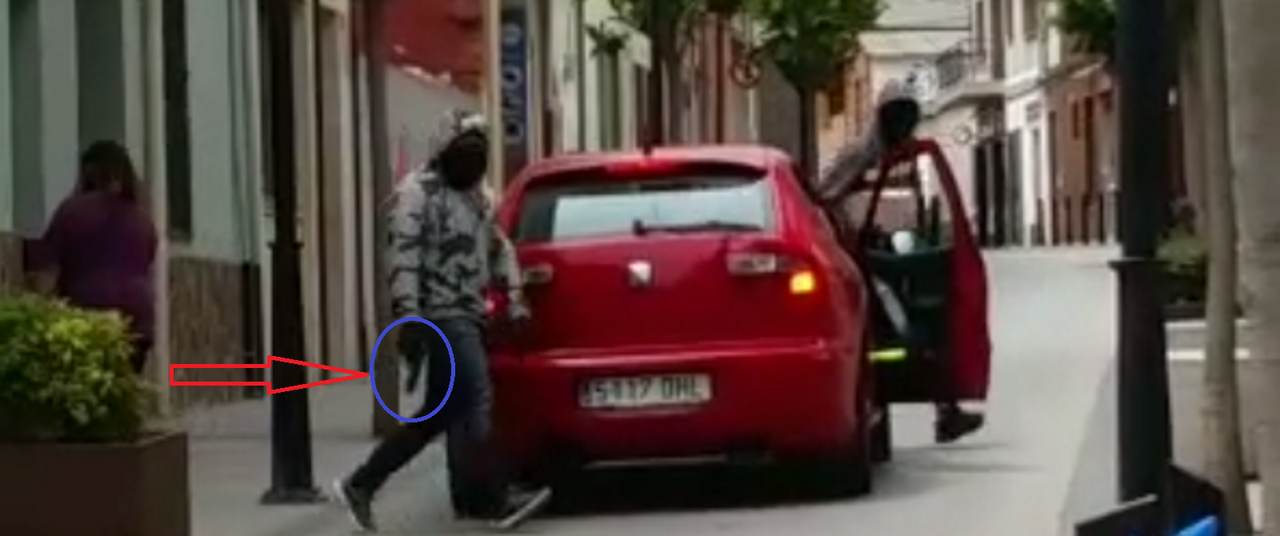 Un vecino ha grabado las imágenes que permiten identificar claramente la matricula del coche, Seat León, supuestamente «robado en Tarrasa (Barcelona)», y también poder ver algunas de los armes de fuego, por ejemplo, el que tenía uno de los atracadores, a la salida supuestamente del supermercado «BonÀrea».