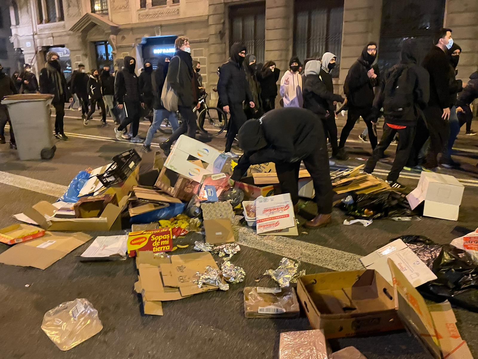 Lasvocesdelpueblo y Agencias – Fomento del Trabajo, las asociaciones empresariales, hoteleras y de restauración de Barcelona han criticado duramente los destrozos acumulados la última semana la capital catalana por parte de grupos de la izquierda radical y los del separatismo alentados por el portavoz del grupo parlamentario de la ultraizquierda Podemos en el Congreso de los Diputados, Pablo Echenique Robba, tras la detención del apero de ultraizquierda Pablo Rivadulla Duró, conocido como «Pablo Hasel» cuyo ingreso en prisión el pasado martes, 16 de febrero de 2021, tras atrincherase en la universidad de Lérida incumpliendo la orden Judicial de su ingreso voluntario en prisión para cumplir otra pena de 9 meses de prisión por enaltecimiento del terrorismo de ETA, Grapo y Al Qaeda, parece no haber gustado a las formaciones de izquierda tanto separatistas como del resto de España en un primer momento aunque 4 días después de la violencia empezaron las primeras condenas de la violencia. Barcelona (España), domingo, 21 de febrero de 2021.