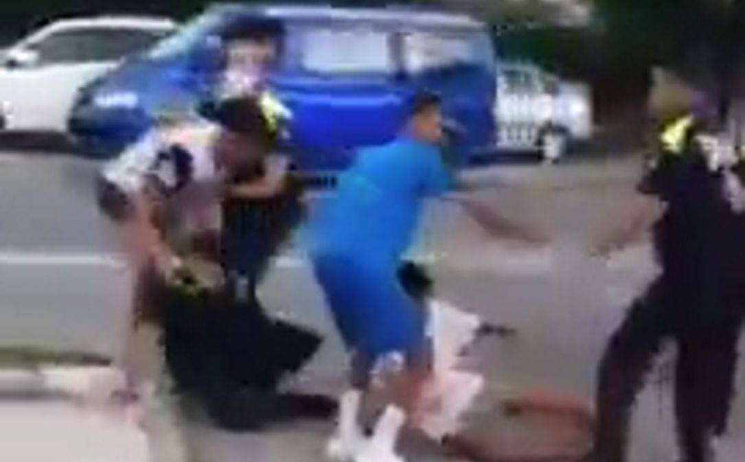 las imágenes muestran a varios, entre ellos, que intentan bloquear el coche para evitar que se llevaran al detenido y los agentes de la policía.