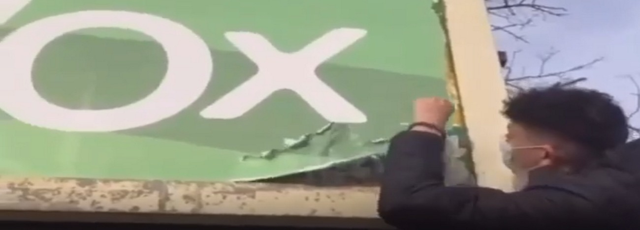 VÍDEO. Gerona, febrero de 2021. MENAS y exMENAS islamistas magrebíes arrancando publicidad electoral del 14F de VOX en la provincia de Gerona al ver peligrar sus intereses económicos y sociales con la llegada de VOX en el Parlamento de Cataluña.