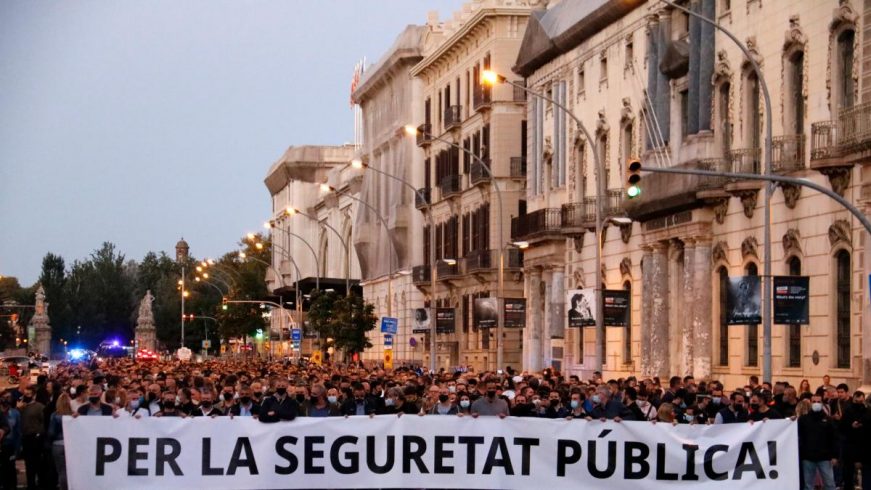 Redacción.- Barcelona (España), sábado 23 de octubre de 2021. Más de 2.000 agentes del cuerpo autonómico de los Mozos de Escuadra de la Generalidad de Cataluña, Policías locales, Vigilantes y Guardias Urbanas de la Comunidad autónoma de Cataluña -según cifra de la Guardia Urbana de Barcelona- se han manifestado este sábado en el centro de Barcelona para denuncia la participación del Gobierno separatista del presidente Pere Aragonés García (ERC) y partidos políticos separatistas ERC, CUP y JxCat en la demonización del Cuerpos que ha provocado un rechazo social de los Mozos de Escuadra en Cataluña tal y como ya fueron rechazado en el resto de España tras el golpe de estado secesionista de 2017, por su comprobada pasividad y afinidad al separatismo. Durante la lectura del manifiesto «Por el Respeto y por la Dignidad», la portavoz de los agentes ha dicho que «¡basta!» al la «utilización partidista y politización» de los Mozos de Escuadra por parte del Gobierno de coalición nacionalsocialista de la Generalidad de Cataluña de la ultraizquierda ERC del indultado político preso del Procés, Oriol Junqueras Vies, de la derecha separatista JxCat del huido golpista Carles Puigdemont Casamajó, apoyado en la extrema izquierda más rancia de Cataluña CUP de Maria Dolors Sabater Puig, exalcaldesa de Badalona (Barcelona).