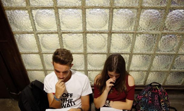 Efe – Los datos arrojan una visión negativa de su futuro laboral, ya que un 74 por ciento considera «bastante» o «muy probable» tener que trabajar en lo que sea y un 67 por ciento piensa que dependerá económicamente de sus padres. Madrid (España), miércoles 26 de octubre de 2016. Fotografía: Varios alumnos antes de realizar un examen en el universidad. Archivo Efe.