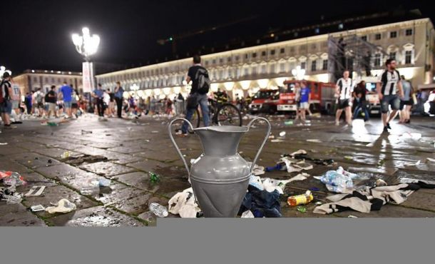 El suceso se produjo pasadas las 22.15 locales cuando los aficionados que se encontraban en la Plaza San Carlo de Turín comenzaron a marcharse rápidamente y terminaron impactando en masa contra las barreras de contención.