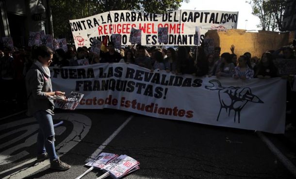 Miles de estudiantes participan en el centro de Madrid y Barcelona en las manifestaciones contra las revalidas y la «elitización» de la educación, convocadas por los sindicatos estudiantiles en toda España, en el marco de la jornada de huelga en la educación secundaria.