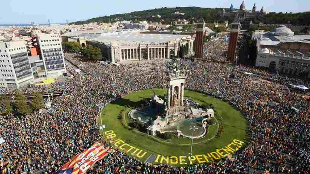 lasvocesdelpueblo y Agencias.- Plaza de España de Barcelona (Barcelona) España, martes 11 de septiembre de 2019. Miles de personas se concentran desde pasadas las 16.00 horas en la plaza Espanya y sus alrededores para participar en la manifestación convocada por la ANC en Barcelona con motivo de la Diada, bajo el lema «Objetivo Independencia».