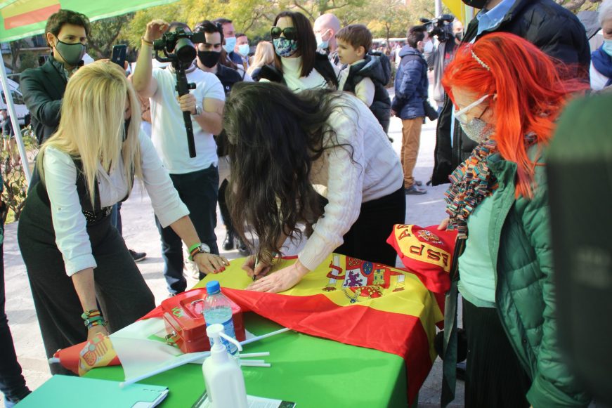 La dirigente nacional de los verdes, que, junto a los candidatos ha, paseado por por las calles de la ciudad, «sin miedo a nada ni a nadie» aunque los grupos separatistas y grupos de extrema izquierda amenazaron con romper el acto y expulsarlos de esta localidad metropolitana de la provincia de Barcelona, ha iniciado su discurso reclamando la catalanidad de VOX, iniciando su discurso con una frase en lengua catalana «Ja som aquí» y advirtiendo a los enemigos de la libertad de extrema izquierda y del separatismo de que «pasaremos y llegaremos al corazón de Cataluña: «al Parlament Catalá» (Parlamento catalán)».