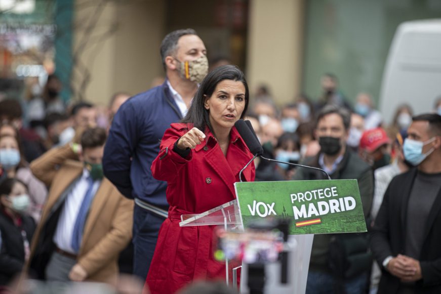 Redacción – «Ya sabemos cómo prevenir el virus, ahora hay que reactivar la Economía». Por esa razón, la candidata de VOX a presidir la Comunidad de Madrid, Rocío Monasterio San Martín, ha vuelto a exigir el fin de las restricciones, los cierres perimetrales o el toque de queda -que Ayuso podría ampliar una hora más «ya mismo», si quisiera-. Madrid (España), 21 de abril de 2021.