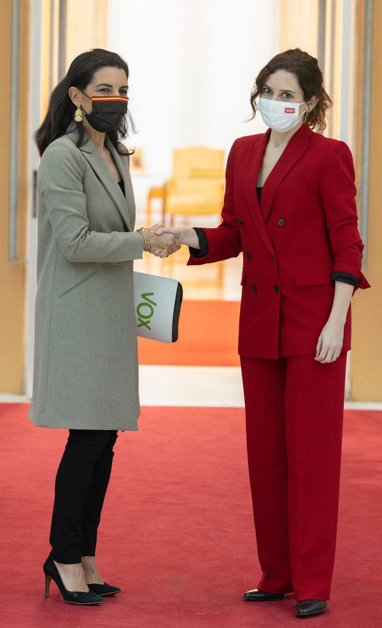 Redacción.- Madrid (España), lunes 24 de enero de 2022. La presidente provisional y portavoz del Grupo Parlamentario de VOX en la Asamblea de Madrid, Rocío Monasterio San Martín, ha mantenido este lunes un encuentro con la presidente de la Comunidad de Madrid, Isabel Natividad Díaz Ayuso (Isabel Ayuso), en marco de las rondas de consulta del nuevo curso político que esta realizando la Ayuso.