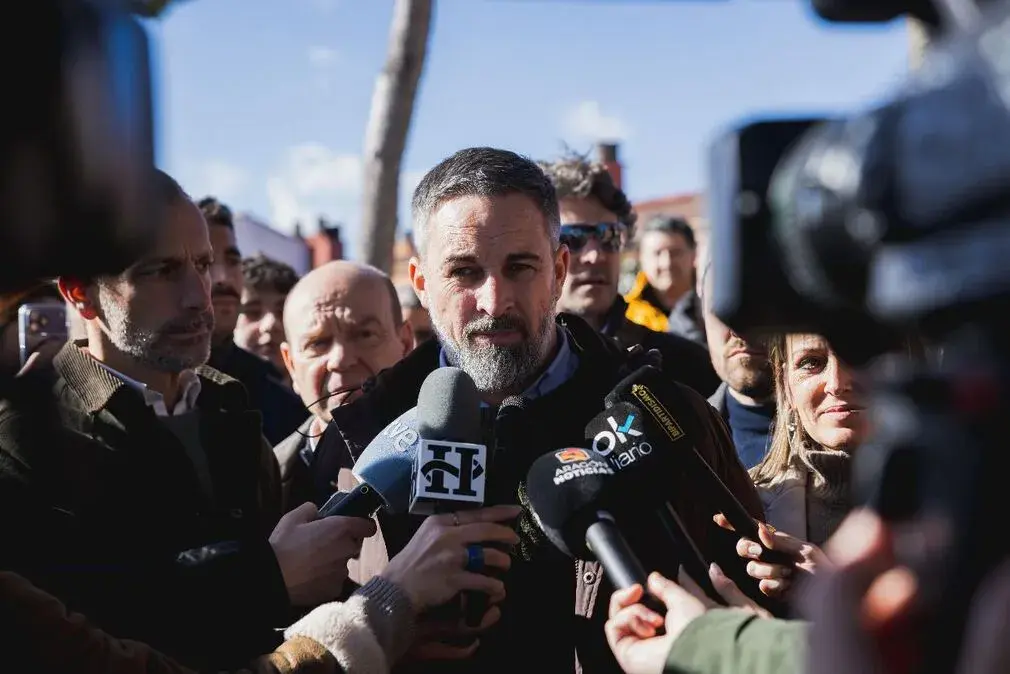 «Esta semana ha sido una semana terrible para los españoles en la que se ha demostrado que no hay nadie al mando de las instituciones». Así de contundente se ha mostrado hoy el presidente de VOX, Santiago Abascal Conde, durante su declaración a medios en La Puebla de Alfindén, municipio de la provincia de Zaragoza.