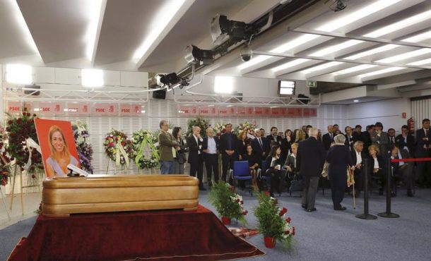 Políticos de todos los partidos y del Gobierno, así como militantes socialistas, han acudido hoy a la sede del PSOE a la capilla ardiente de Carme Chacón, cuyos restos mortales serán incinerados mañana en Madrid y después sus cenizas se trasladarán a su localidad natal Esplugues de Llobregat (Barcelona).