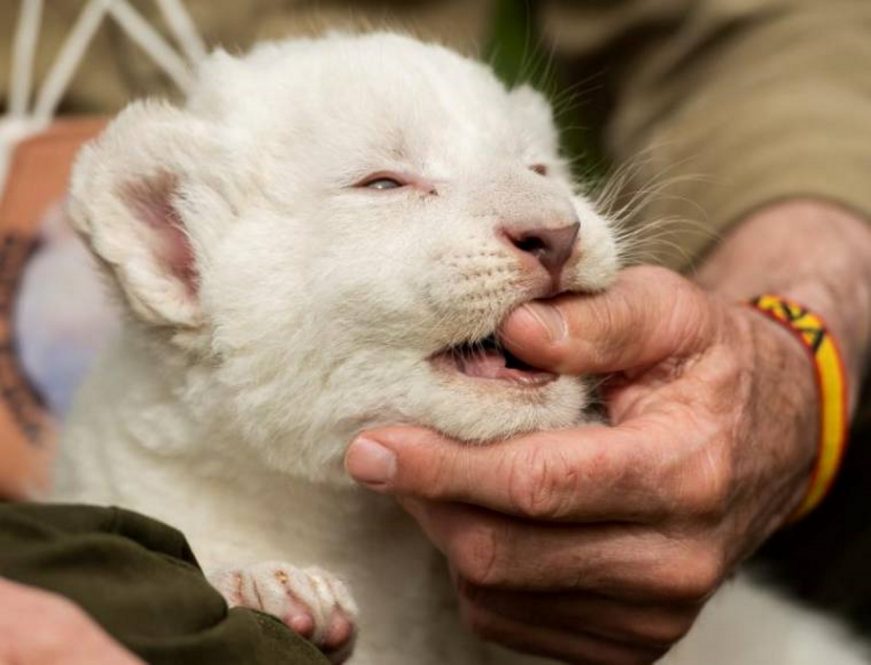 Efe – El primer león blanco nacido sin enfermedades en España pesa casi cuatro kilos, y crece poco a poco y con los máximos cuidados en el zoo Mundo Park de Guillena (Sevilla), donde hoy ha sido presentado oficialmente por sus cuidadores. Guillena (Sevilla) España, sábado 27 de febrero de 2021.