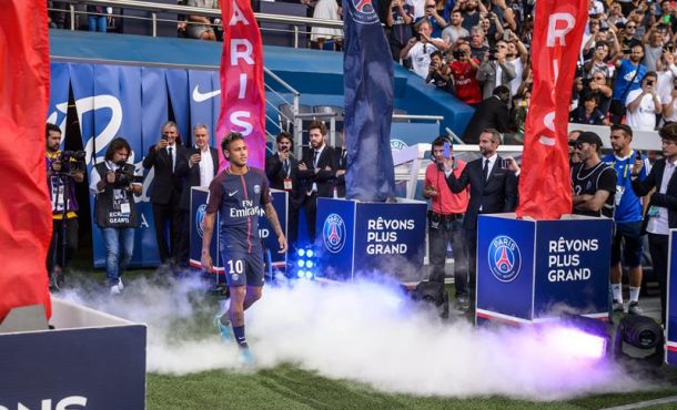 El jugador, fichado del Barcelona por 222 millones de euros, recibió la fervorosa bienvenida de decenas de miles de aficionados del PSG, congregados en el estadio desde horas antes del comienzo del primer partido liguero frente al Amiens, previsto para las 17.15 (15.15 GMT).
