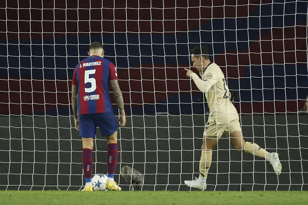 El partido entraba en un intercambio de golpes en el que Jao Félix perdonaba el segundo tanto azulgrana enviando a las nubes un disparo desde el punto de penalti tras recibir una asistencia de Raphinha, y de nuevo Iñaki Peña sacaba una mano salvadora a un tiro colocado de Varela poca antes de llegar al descanso.