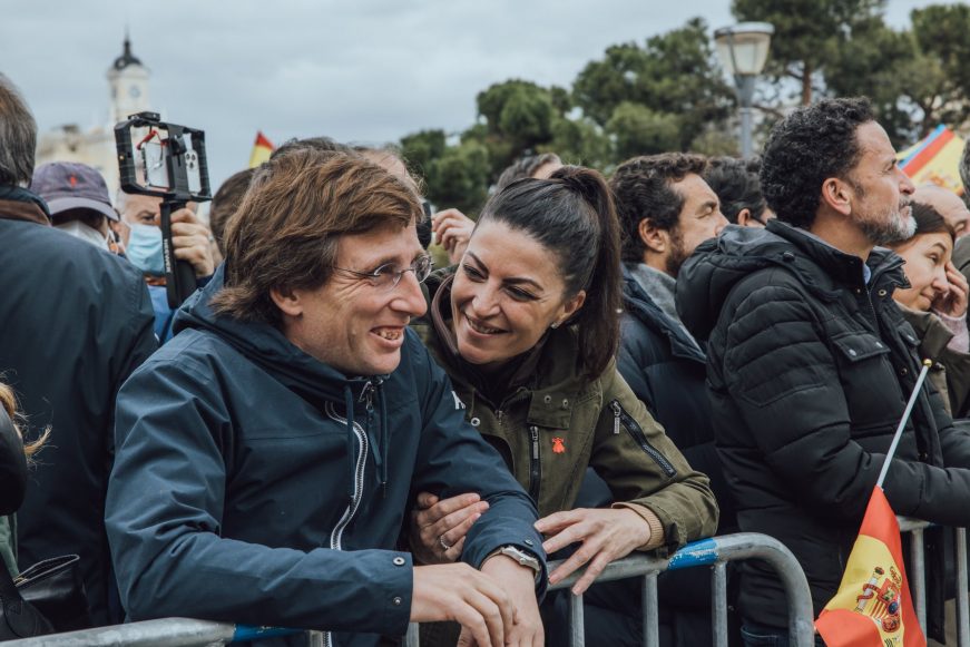 En las imágenes se puede comprobar como el dirigente de Cs, Manuel Bal Francés, no se siente para nada cómodo en una foto con la secretaria general del Grupo Parlamentario de VOX en el Congreso de los Diputados, Macarena Olona Choclán.; imágenes que contrastan con la sonrisa que luce el alcalde de Madrid, José Luis Martínez-Almeida; quizás porque el también portavoz nacional del PP hasta estallarse la crisis interna se haya visto obligado al fracasar los planes de la Ejecutiva nacional del PP de Pablo Casado Blanco.