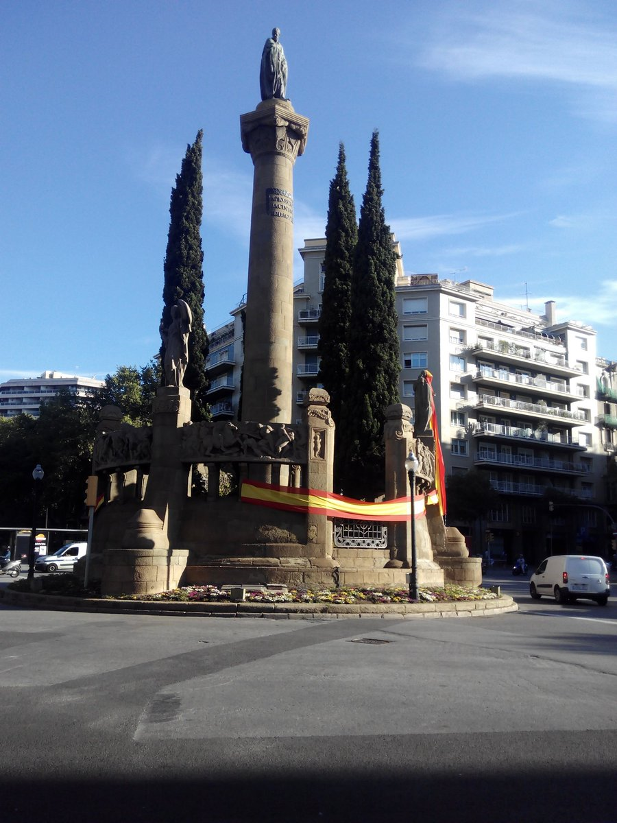 Algú s’ha gastat força pasta en guarnir amb banderes espanyoles els monuments de Bcn. Osti!Ara ja em sento espanyol! pic.twitter.com/8CSdMA9TaX