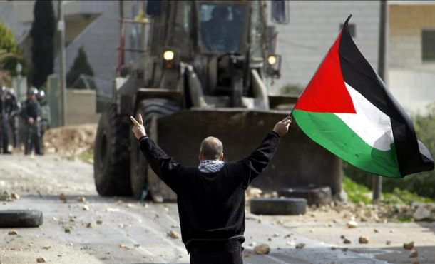 EFE – La ONU condenó hoy el ataque perpetrado por un grupo de palestinos contra la Tumba de José, en Nablus, y avisó de las graves consecuencias de convertir el conflicto palestino-israelí en un conflicto religioso. Naciones Unidas, 16 octubre 2015. <Fotografía: Un palestino ondea una bandera palestina durante una protesta contra los asentamientos judíos en Qadomen, en la localidad de Kofr Qadom, cerca de Nablus, Cisjordania. EFE>.