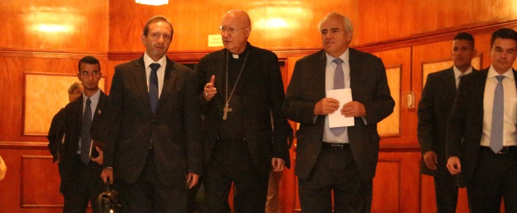 Mensaje de los negociadores: el secretario general de UNASUR y el enviado del Papa de Roma, Monseñor Claudi Celli