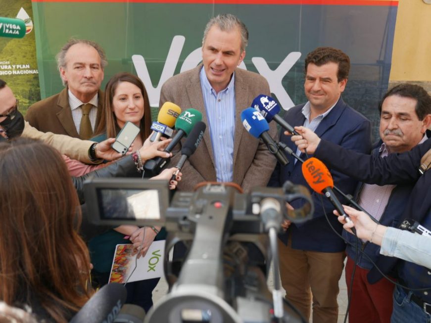 Redacción. – Orihuela Valencia (España), viernes 29 de abril de 2022. El Secretario General de VOX, diputado en el Congreso de los Diputados y portavoz del Grupo Municipal de los verdes en el Ayuntamiento de Madrid, Francisco Javier Ortega Smith Molina, ha reivindicado esta mañana frente al Teatro Circo de Orihuela (Comunidad Valenciana), la necesidad de un Plan Hidrológico nacional. «VOX viene a darle una solución al campo y viene a trabajar en un proyecto nacional del agua, en un gran Plan Hidrológico Nacional que ponga en valor nuestro campo y que logre que nuestra agricultura siga siendo puntera en el mundo».