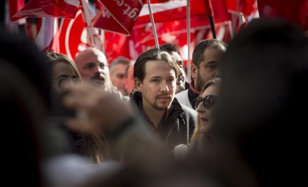 Efe – El secretario general de Podemos, Pablo Iglesias, ha afeado hoy a su número dos, Íñigo Errejón, que haga «progaganda» en Twitter del modelo de partido que defiende con la etiqueta #PodemosParaGanar. Madrid (España), lunes 28 de noviembre de 2016. Fotografía: El líder de Podemos, Pablo Iglesias (c), ha participado hoy en la manifestación convocada por los sindicatos con motivo de la huelga de 24 horas por el bloqueo de la negociación del convenio del sector de atención telefónica. Efe.