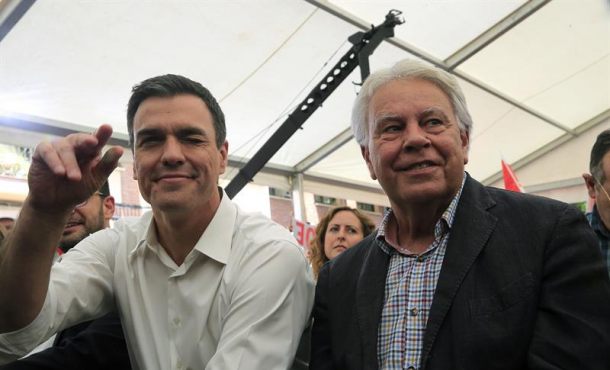 Lasvocesdelpueblo y Agencias – Unidos Podemos de Pablo Iglesias y Alberto Garzón quieren un «Catexit» (Una Cataluña fuera de España en un referéndum de autodeterminación) ha denunciado el secretario general del Partido Socialista Obrero Español (PSOE) y candidato del PSOE a la presidencia del gobierno de España el próximo domingo 26 de junio 2016, Pedro Sánchez Pérez-Castejón. Por lo Sánchez ha advertido hoy de que lo ocurrido en Reino Unido esta madrugada con la víctoria del «Brexit» -los partidarios de un Reino Unido fuera de la Unión Europea- se debe a la «confluencia entre una derecha irresponsable -dijo en referencia al fracasado David Cameron, señalando indirectamente a Mariano Rajoy- y el populismo -señalando a la coalición Unidos Podemos de Pablo Iglesias-» y ha pedido el voto para evitar eso en España. «Yo no quiero eso para España, la salida es un PSOE fuerte y ganador que apueste por la socialdemocracia». Sevilla (España), viernes 24 de junio de 2016. Fotografía: El secretario general del PSOE, Pedro Sánchez (i), junto al expresidente del Gobierno Felipe González, durante un acto de cierre de campaña celebrado hoy en el barrio madrileño de Villaverde. Efe.