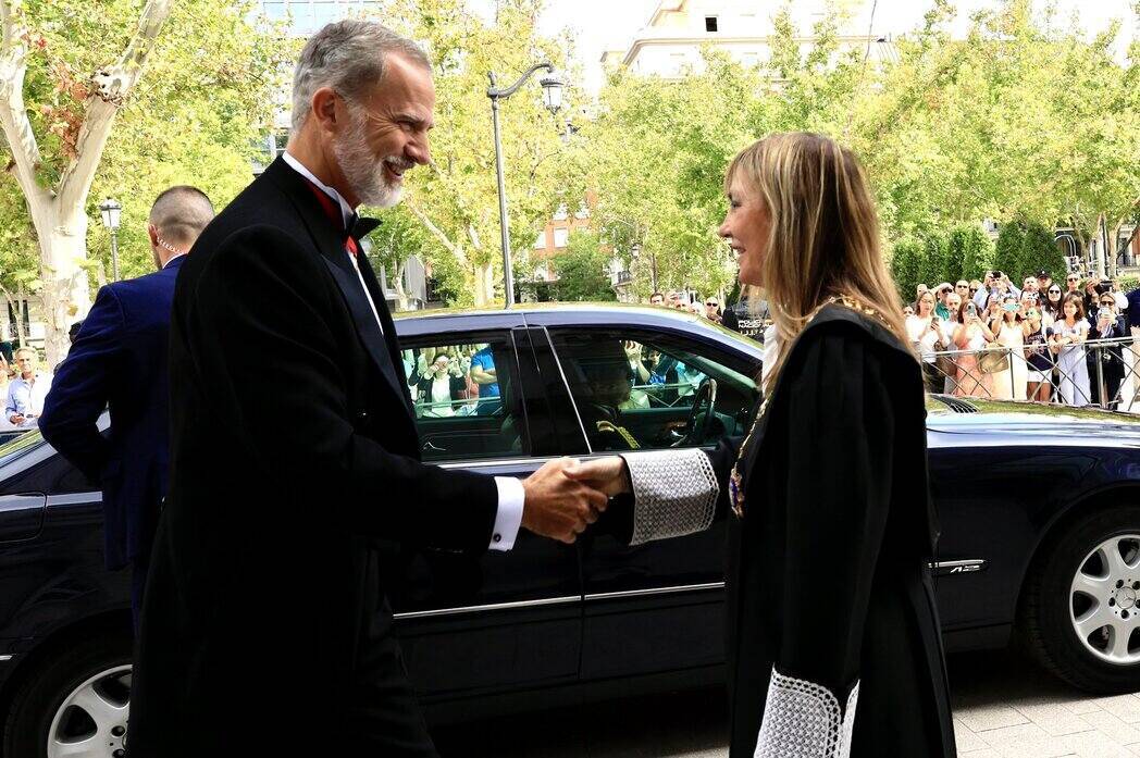 Su majestad el rey Felipe VI de España (Felipe Juan Pablo Alfonso de Todos los Santos de Borbón y Grecia) presidió hoy el acto de apertura del año judicial 2024 y 2025 en la Sala de los Plenos del Tribunal Supremo, con estrella de la jornada, la nueva presidente del Tribunal Supremo (TS) y del Consejo General del Poder Judicial (CGPJ), la natural de Cataluña y progre (progresista) María Isabel Perelló Doménech.