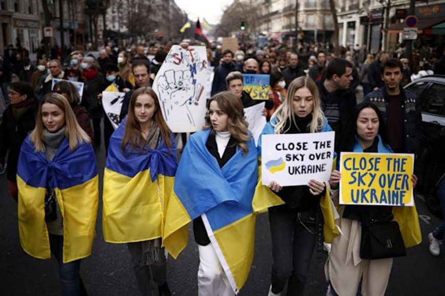 Los ucranianos presentes hacían demandas más concretas a la comunidad internacional, por ejemplo para que se envíen armas a los que luchan contra la invasión de Rusia. Y muy particularmente para que se declare una zona de exclusión aérea en el espacio aéreo de Ucrania para evitar los bombardeos rusos.