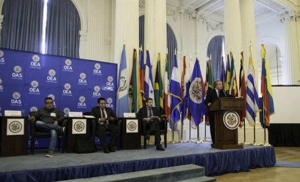 Agencias – El chavismo pide al Supremo anular el apoyo del Legislativo a la Carta Democrática. Al presentar el acuerdo, el diputado opositor Luis Florido, presidente de la Comisión Permanente de Política Exterior de la Asamblea Nacional del país aseguró que «en Venezuela se alteró el orden constitucional» y que por ello se pide la «aplicación» de la Carta Democrática que, señaló, es un mandato que está «por encima de la Constitución». Caracas (Venezuela), jueves 23 de marzo de 2017. Fotografía: El secretario general de la Organización de Estados Americanos (OEA), Luis Almagro (dcha.), habla durante su discurso de apertura de una mesa redonda con cuatro de las principales organizaciones no gubernamentales de Venezuela ayer martes 21 de marzo 2017, en la sede de la organización en Washington, DC. Efe.