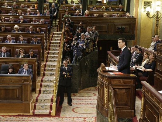 Efe – El líder del PSOE, Pedro Sánchez, recibirá hoy el «no» mayoritario de los grupos parlamentarios a su investidura, cuyo debate comenzó ayer con el discurso del secretario general socialista en el que reclamó el voto para un gobierno de cambio que desaloje al PP y a Mariano Rajoy de la Moncloa. Madrid, 2 marzo 2016. Fotografía: