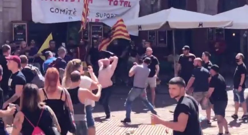 Las imágenes muestran claramente quienes son los atacantes: la ultraizquierda separatista, que visiblemente preparó su ofensivo y cogió por sorpresa y desprotegida a la de la extrema derecha separatista al gritos de «Cataluña antifascistas», «(fora la Dreta, els feixistes…) Fuera la derecha, los fascistas…», «hijos de puta», etc.