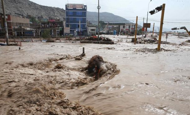 El desborde del río Rímac, que atraviesa la capital peruana hasta desembocar en el océano Pacífico, volvió a anegar las calles de los municipios de Chosica y Huachipa, situados en el este de la capital peruana.