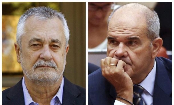 Efe – La Fiscalía Anticorrupción pide seis años de prisión y 30 de inhabilitación para el expresidente socialista andaluz José Antonio Griñán por un delito continuado de malversación y otro de prevaricación en el caso de los ERE, y diez años de inhabilitación para su antecesor, Manuel Chaves, por prevaricación. Sevilla (España), jueves 15 de septiembre de 2016. Fotografía de archivo de los expresidentes socialistas andaluces José Antonio Griñán (i), para quien la Fiscalía Anticorrupción pide 6 años de prisión y 30 de inhabilitación por un delito continuado de malversación y otro de prevaricación en el caso de los ERE, y su antecesor, Manuel Chaves, para quien se piden 10 años de inhabilitación por prevaricación. Efe.