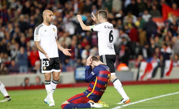 Mejoró el conjunto barcelonista respecto a sus anteriores comparecencias, pero entre su falta de acierto y la gran actuación del meta brasileño Diego Alves el panorama volvió a derivar en derrota. El Valencia, renacido con Pako Ayestarán en el banquillo y ya sin el miedo de hace poco por la cercanía de la zona roja, se resguardó en el acierto de su guardameta, en su trabajo defensivo y en las salidas a la contra.