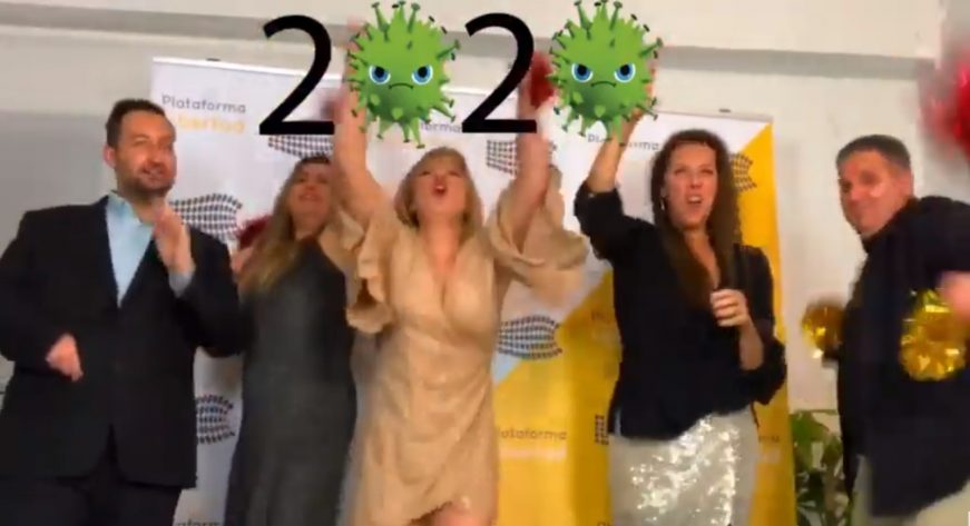 FOTOGRAFÍA. ESPAÑA, 31.12.2020. Los miembros de la junta directiva de Plataforma Libertad despiden 2020, «deseado al pueblo español, de todo corazón, que entres en el año 2021 con muy buen pie y que se nos olvide rápido lo mal que lo hemos pasado este pasado año 2020». La entidad de Lola Sopeña ha iniciado una campaña de recogida de medio millón de firmas para crear una Proposición de Ley contra las mentiras de los partidos políticos, que debe ser liderada por el pueblo y que presentará en el Congreso de los Diputados y en el Parlamento Europeo. Puedes firmar dicha campaña a https://www.plataformalibertad.es/galeria. Lasvocesdelpueblo (Ñ Pueblo)