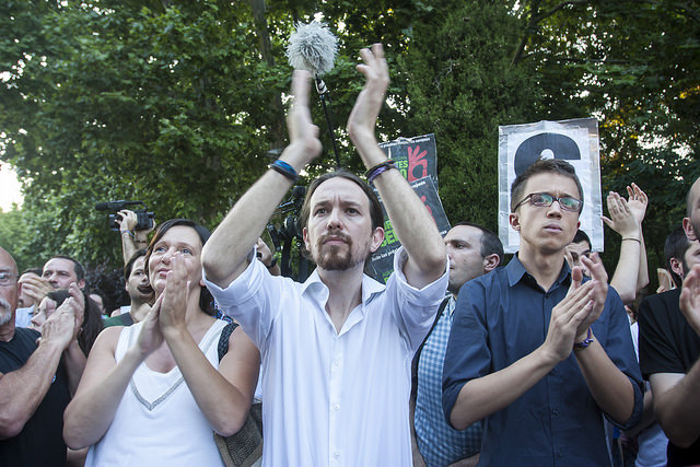 La formación que lidera Pablo Iglesias, Podemos, ha denunciado este lunes el «ultimátum y chantaje» de la Troika a Grecia y ha felicitado al presidente griego, Alexis Tsipras por su valentía. En un comunicado emitido este lunes, 29 de junio 2015, Podemos valora muy positivamente la actuación del presidente Alexis Tsipras quien según fuentes de la organización de Iglesias «ha reaccionado de manera ejemplar: dándole la palabra a la ciudadanía para que decida de manera democrática y soberana su propio futuro» -señalan fuentes de Podemos- «A diferencia de lo que hizo el Gobierno de España en 2011 y 2012, el gobierno griego se ha negado a violar el mandato popular que recibió de las urnas el pasado mes de enero. Todos los intentos de coaccionar, amedrentar e influir en esa votación por parte de poderes no elegidos, y en especial por parte del Banco Central Europeo, dispuesto a asfixiar el sistema financiero griego para influir en el referéndum, constituyen una violación flagrante e inaceptable del principio democrático», destaca la formación de Iglesias que lo explica en cinco puntos que acaban con la siguiente reflexión: «Hoy en Europa hay dos campos enfrentados: la austeridad y la democracia, el gobierno del pueblo o el gobierno de los mercados y sus poderes no elegidos. Nosotros estamos con la democracia. Nosotros estamos con el pueblo griego».
