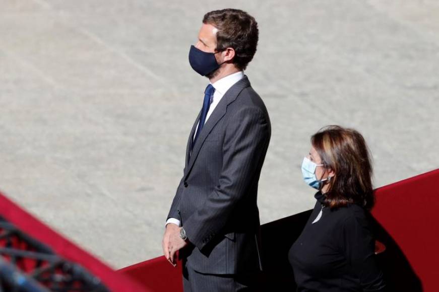 En declaraciones a los medios al término del acto de la Fiesta Nacional en la plaza de la Armería del Palacio Real, Casado ha explicado que pedirán que se retire el estado de alarma «incluso antes de tener que venir al Congreso a explicar por qué lo han puesto en marcha».