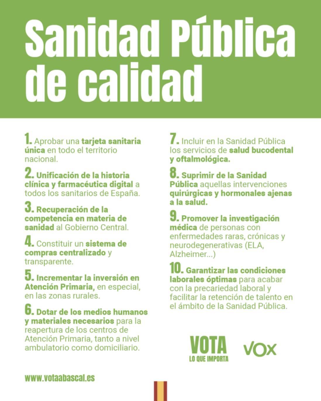 La formación de Abascal es consciente de que la Sanidad necesita más inversión, y gastando mejor.
