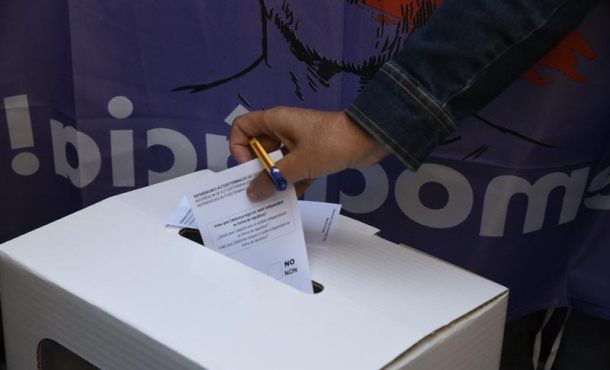 Lasvocesdelpueblo y Agencias – La Agencia Española de Protección de Datos ha advertido hoy de que quienes participen el domingo en las mesas del referéndum que pretenden celebrar los separatistas en Cataluña podrían incurrir en una infracción de la normativa existente en este ámbito sancionada con hasta 300.000 euros. Madrid España), viernes 29 de septiembre de 2017. Fotografía: Bigas y Riells (ESPAÑA), 20.09.2017. En la imagen una ‘separata’ con bolígrafo de bandera ‘separata’ y una papeleta del referéndum suspendido por la Justicia hace el gesto simbólico de votar para llamara a la movilización durante la jornada electoral del 1-O. Efe.