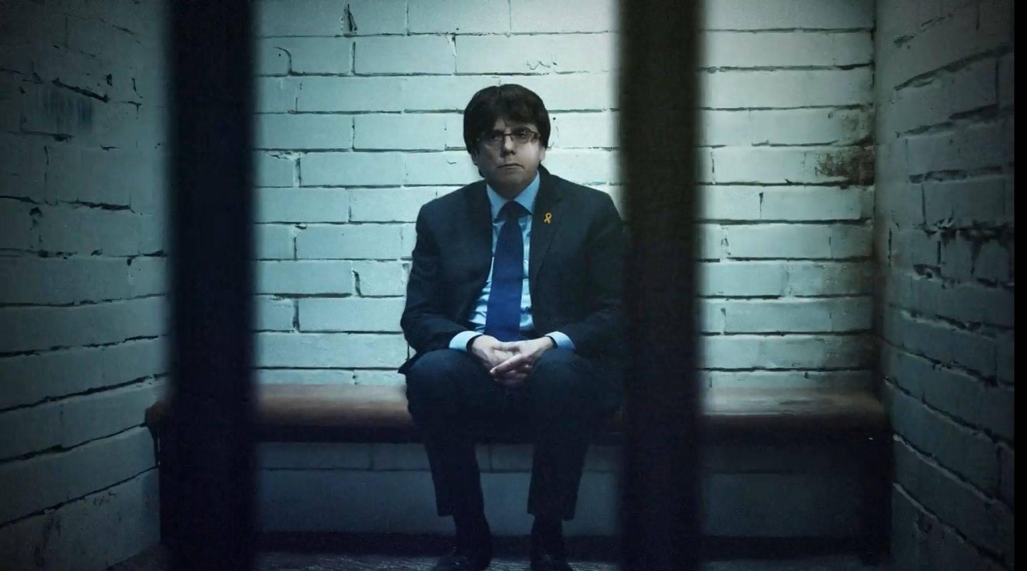 En él aparecen imágenes de Puigdemont y Sánchez con el lema «detenlos» y el vídeo finaliza con Puigdemont entre barrotes.