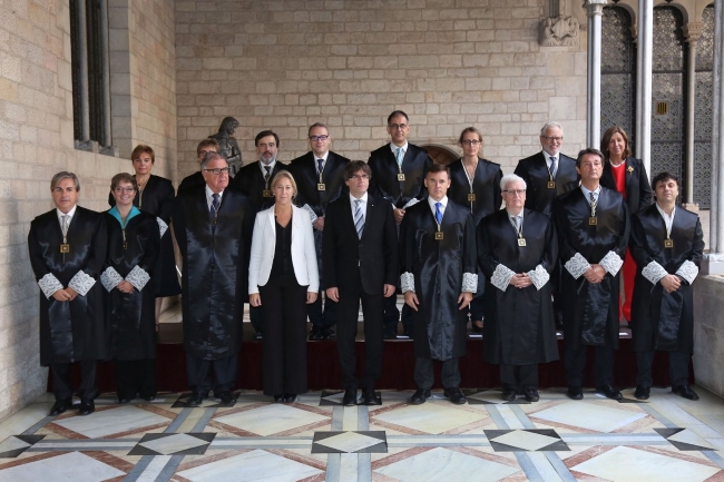 Carles Puigdemont ha aprovechado que el presidente de la Comisión Asesora Jurídica, Albert Lamarca, ha hablado en su intervención de la importancia del derecho y la justicia en una sociedad como la catalana para cerrar el acto con un discurso alabando el trabajo de los miembros de del organismo, e invitándoles a mantener su labor asesora «en este viaje hacia el nuevo estado» catalán.