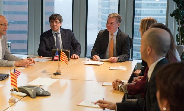 Puigdemont ha iniciado este lunes, 27 de marzo de 2017, en Boston su primer viaje a Estados Unidos como presidente de la Generalidad, que durará cinco días, pero no está previsto que se reúna con ningún funcionario del Gobierno Trump.
