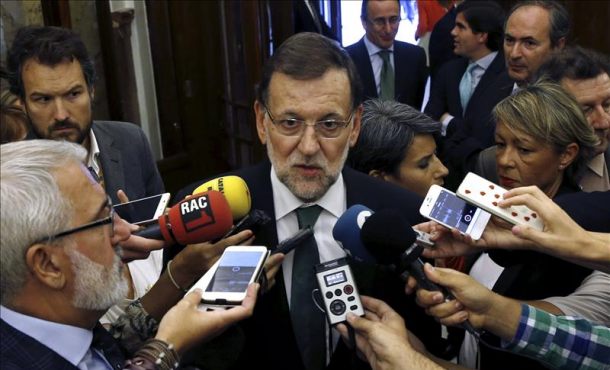 EFE – Mariano Rajoy comparte «plenamente» las palabras del presidente de EEUU, Barack Obama, a favor de una «España fuerte y unida», una posición sobre la que el president Artur Mas ha dicho no sentirse «aludido» en un momento en que apuesta por la secesión unilateral de Cataluña en la campaña del 27S. <Fotografía: El presidente del Gobierno, Mariano Rajoy, realiza declaraciones hoy en el Congreso, donde se aprueba en pleno el proyecto de ley de Presupuestos Generales del Estado de 2016, después de tres días de debate, con lo que iniciará su tramitación en el Senado. Rajoy ha subrayado que comparte «plenamente» las palabras del presidente estadounidense, Barack Obama, sobre España porque él también quiere «una España fuerte y unida» y así lo piensan «la mayoría de los dirigentes en todo el mundo». Foto/Efe>