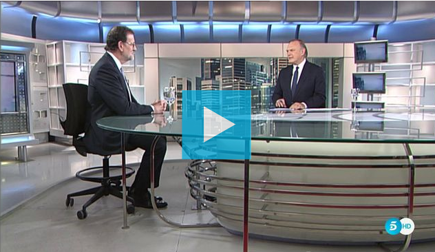 Tele 5: Si ha referéndum, ¿Qué haría? Rajoy: «Tengo una buena costumbre, que es no adelantar acontecimientos. De momento nadie lo ha convocado ni nos consta que se vaya a convocar». «Hoy es imposible que se produzca una separación. Cataluña se tendría que ir de la UE, de los tratados internacionales».