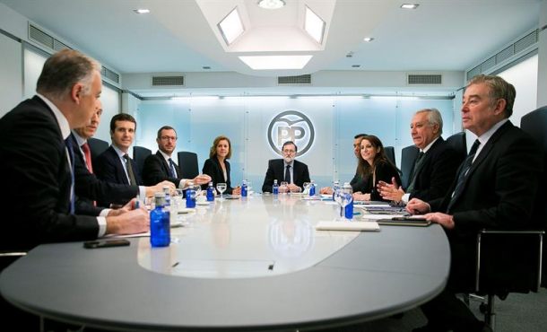 Efe – Esperan al menos que Rajoy les diga si tiene intención de seguir al frente del partido o si quiere liderar una transición que lleve, como han apuntado varios dirigentes consultados por Efe estos días, a un congreso extraordinario para renovar el liderazgo. Madrid (España), martes 5 de junio de 2018. Fotografía: MADRID (ESPAÑA), 8.1.2018. Fotografía facilitada por el PP de la reunión del Comité de dirección del partido que ha tenido lugar esta mañana en la sede de la calle Génova, en Madrid. Efe